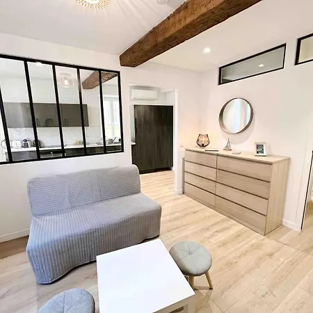 Et køleskab og glas er til rådighed til selvforplejning. Denne 40 m^2 ferielejlighed ligger 20 km fra Nice lufthavn.